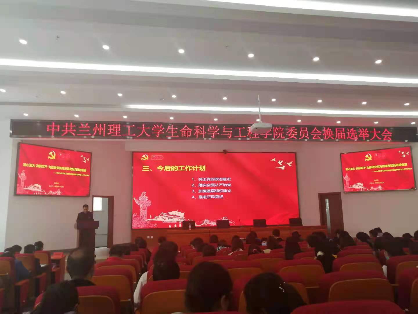 4月13日下午,中共蘭州理工大學(xué)生命科學(xué)與工程委員會(huì)換屆選舉大會(huì)在蘭工坪校區(qū)圖書(shū)館二樓報(bào)告廳隆重舉行。學(xué)院全體師生黨員參加大會(huì),黨外人士代表和退休教師受邀出席大會(huì)。學(xué)院黨委副書(shū)記武軍莉主持大會(huì)。
