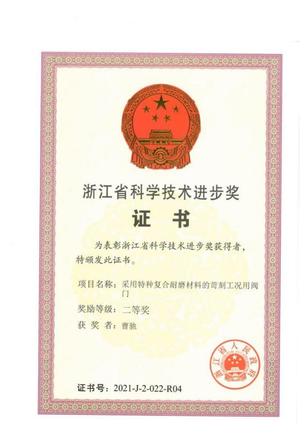 與超達閥門合作的苛刻工況用復合涂層閥門相關項目承擔了浙江省科技重大項目,并獲得浙江省科技進步獎二等獎