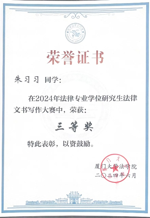 抓培養(yǎng)過程,自2020年起,實施學位論文預開題、預答辯,強化集體指導,抓早學位論文質量關;強化、量化專業(yè)學位課堂教學改革及培養(yǎng)過程要求,抓實法律專業(yè)學位研究生規(guī)模化培養(yǎng)要求下的潛在問題。研究生在全國法律文書大賽中斬獲三等獎,取得標志性成果。